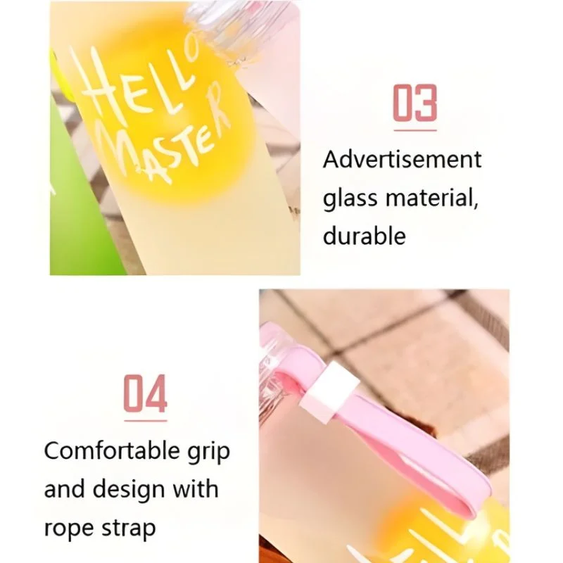 Stay hydrated in style with the Frosted Glass Water Bottle 400ml featuring a modern Hello Master decal logo. Made from high-quality borosilicate glass, this bottle is BPA-free, durable, and safe for everyday use. Its sleek frosted design makes it perfect for gym, office, school, travel, hiking, camping, and outdoor activities. Lightweight and portable, it easily fits into your bag, making it a reliable hydration companion wherever you go. Ideal for storing water, tea, coffee, juice, and beverages, it combines functionality with elegant design.